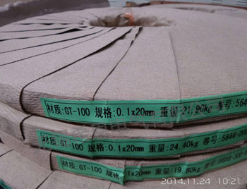 无锡榴莲视频APP下载IOS电气有限公司常年供应日本进口0.10mm厚度,20mm宽度的冷轧硅钢片,性能优于国产DG6,损耗400HZ时小于14W,一致性好,硅钢片表面涂层可耐高温800度以上,绝缘电阻高,版型平整无毛刺,价格优惠,欢迎来厂看货采购!